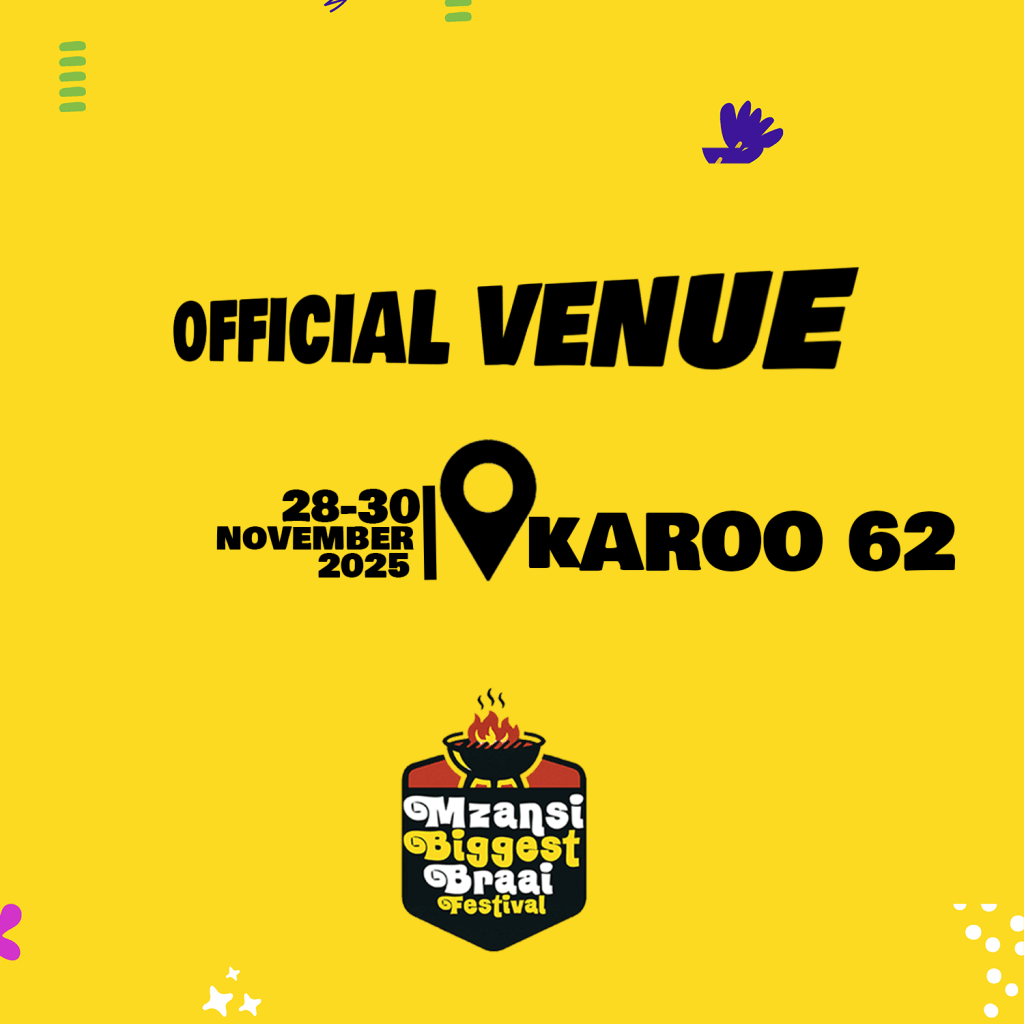 Mzansi Biggest Braai Festival will take place from the 28th to the 30th of November 2025, at Karoo 62, Ladismith, Western Cape.